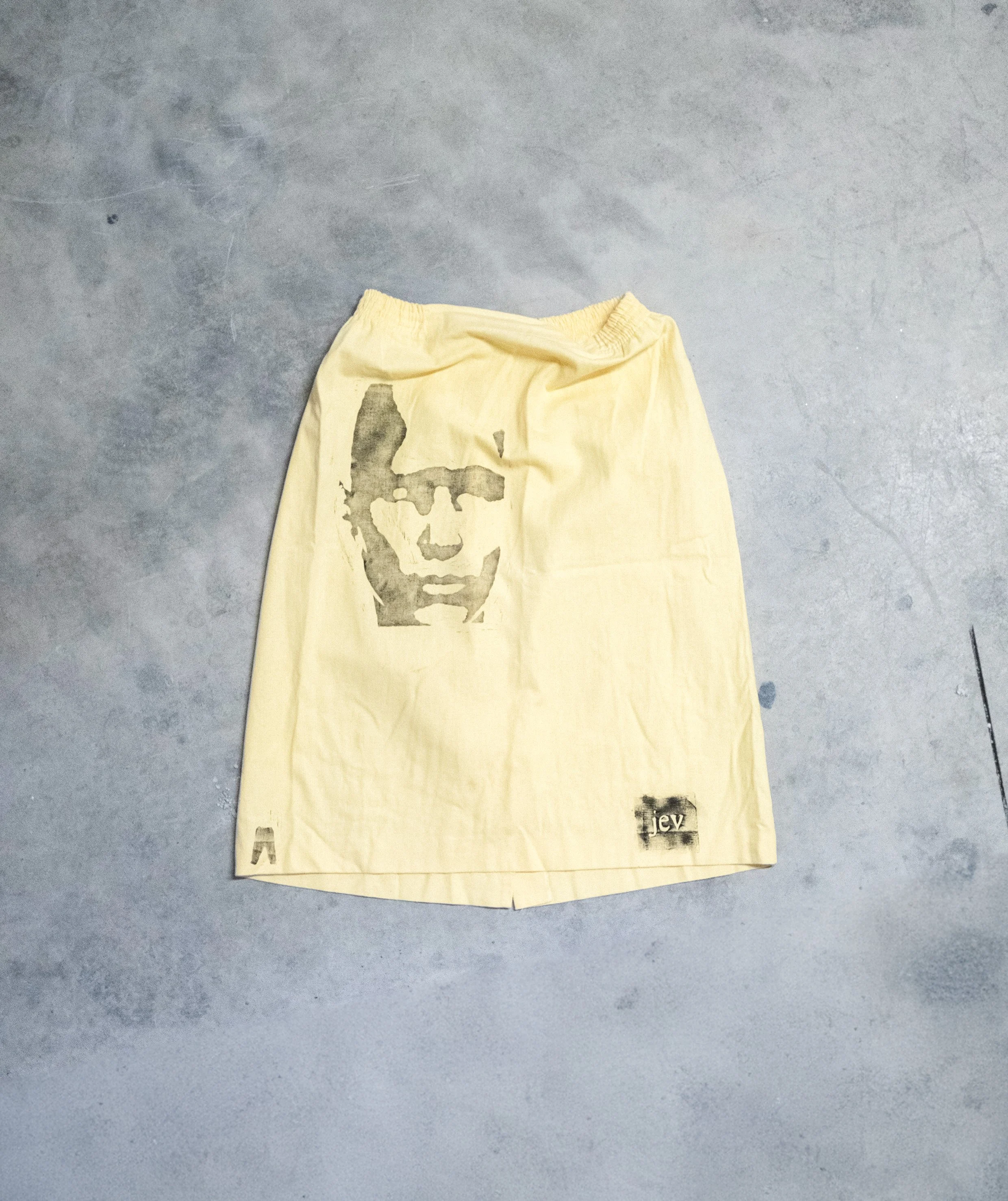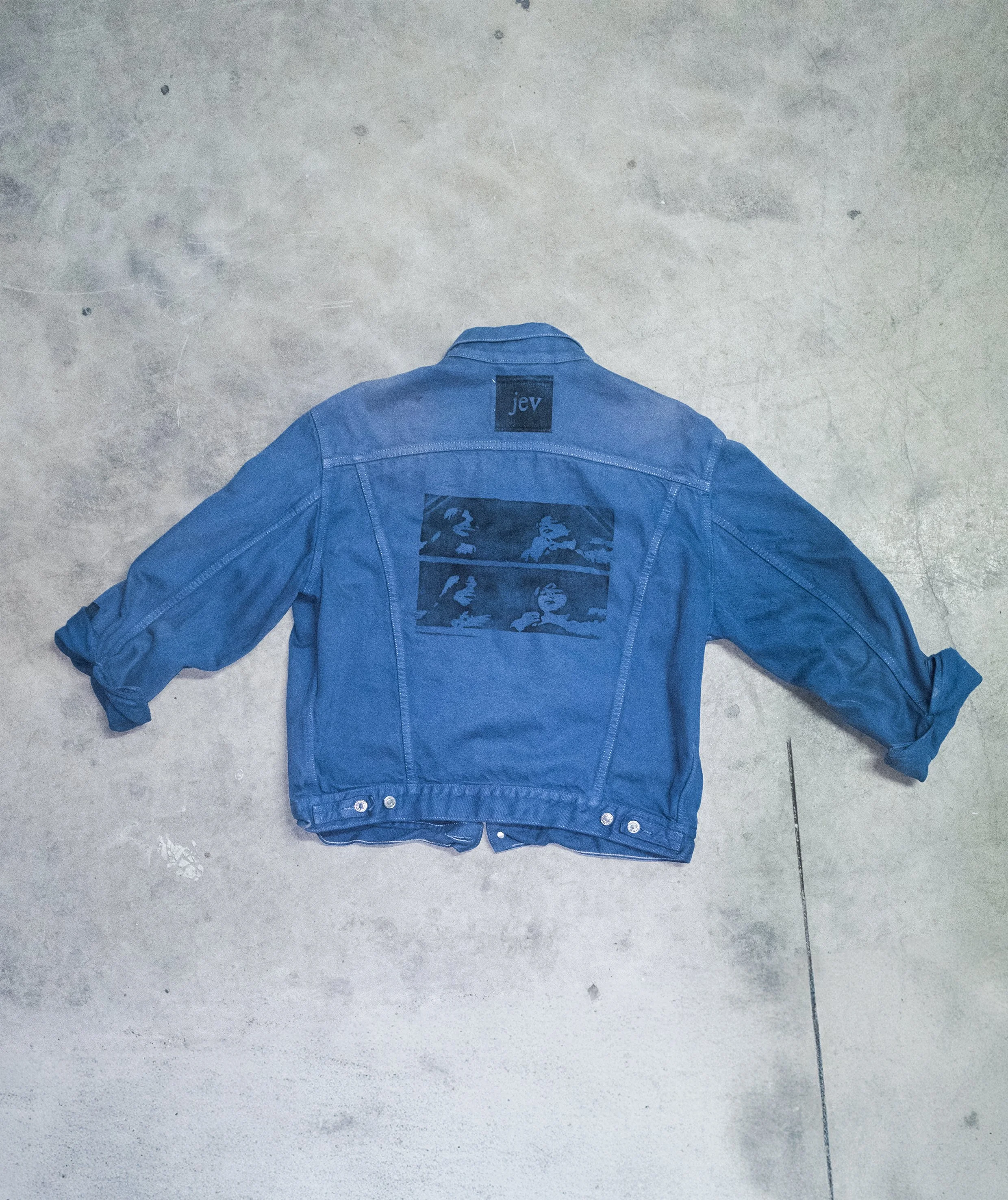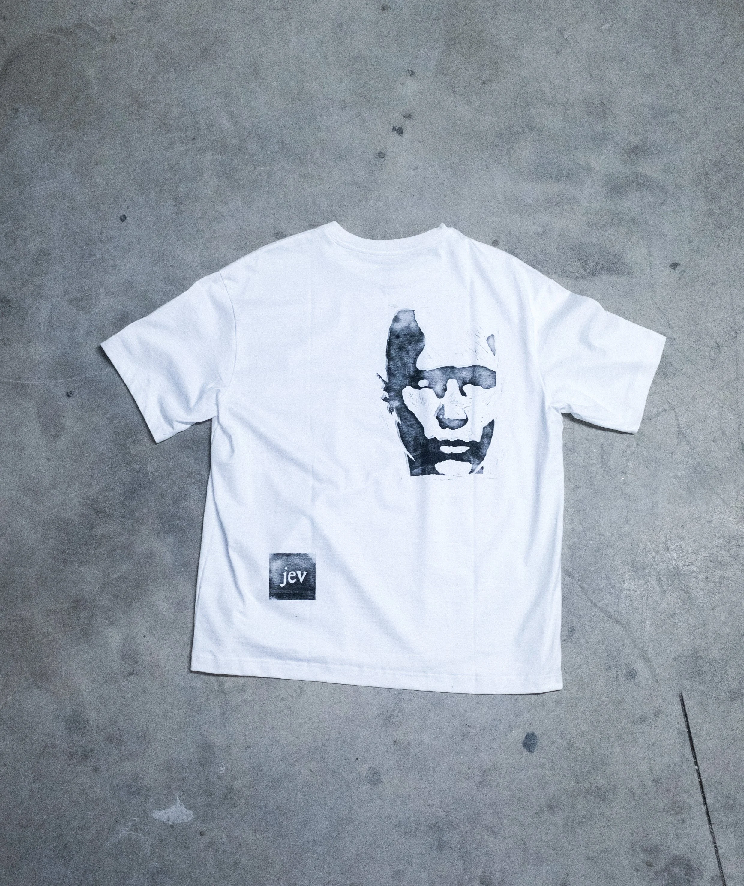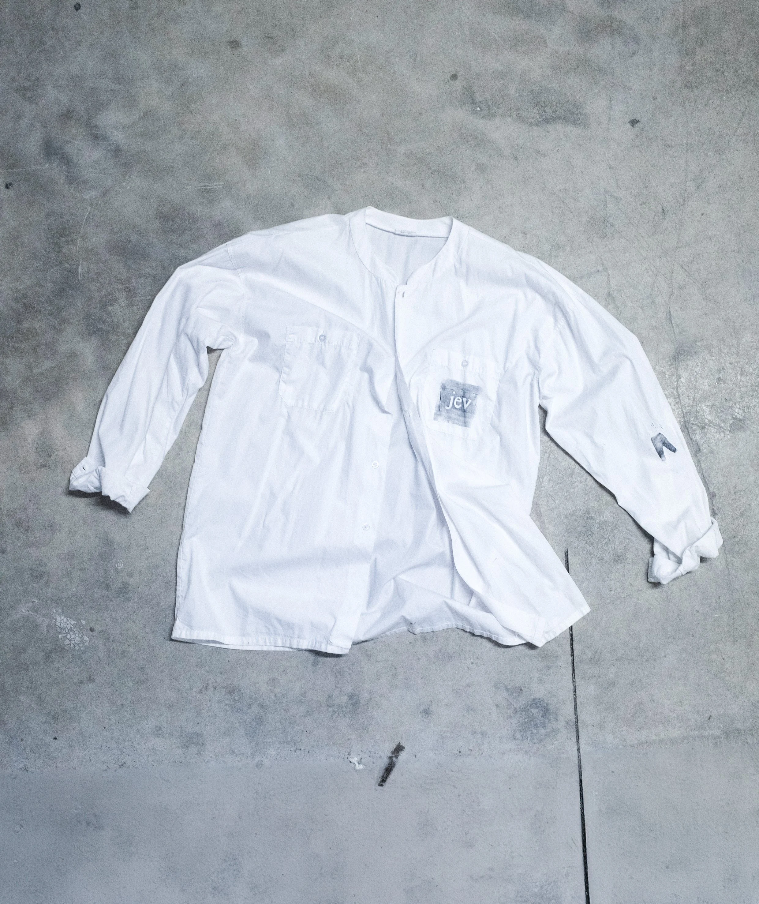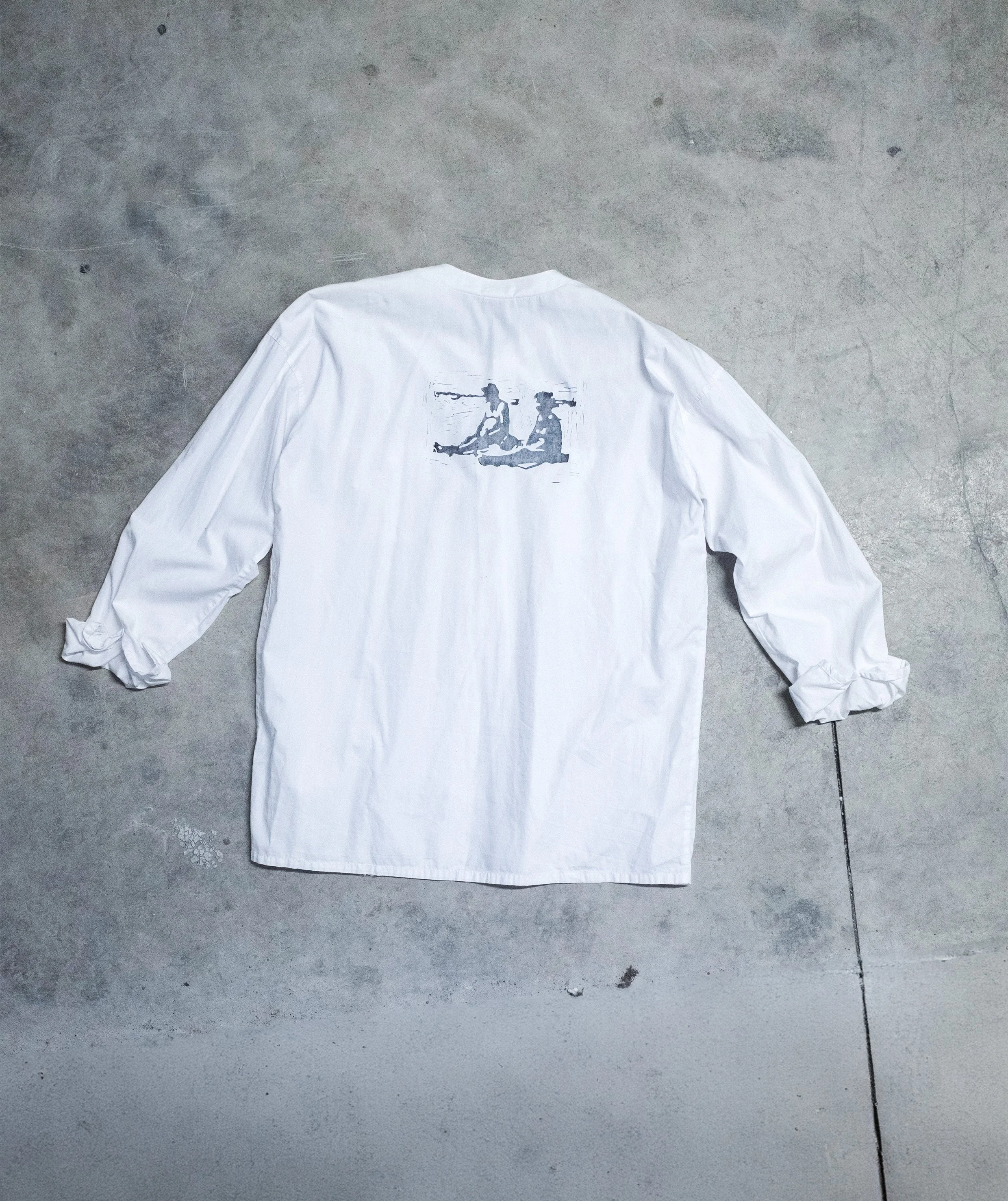 The printed clothing pieces below are created using linocut: each design is hand-carved onto a linoleum block and then printed by hand with black ink.